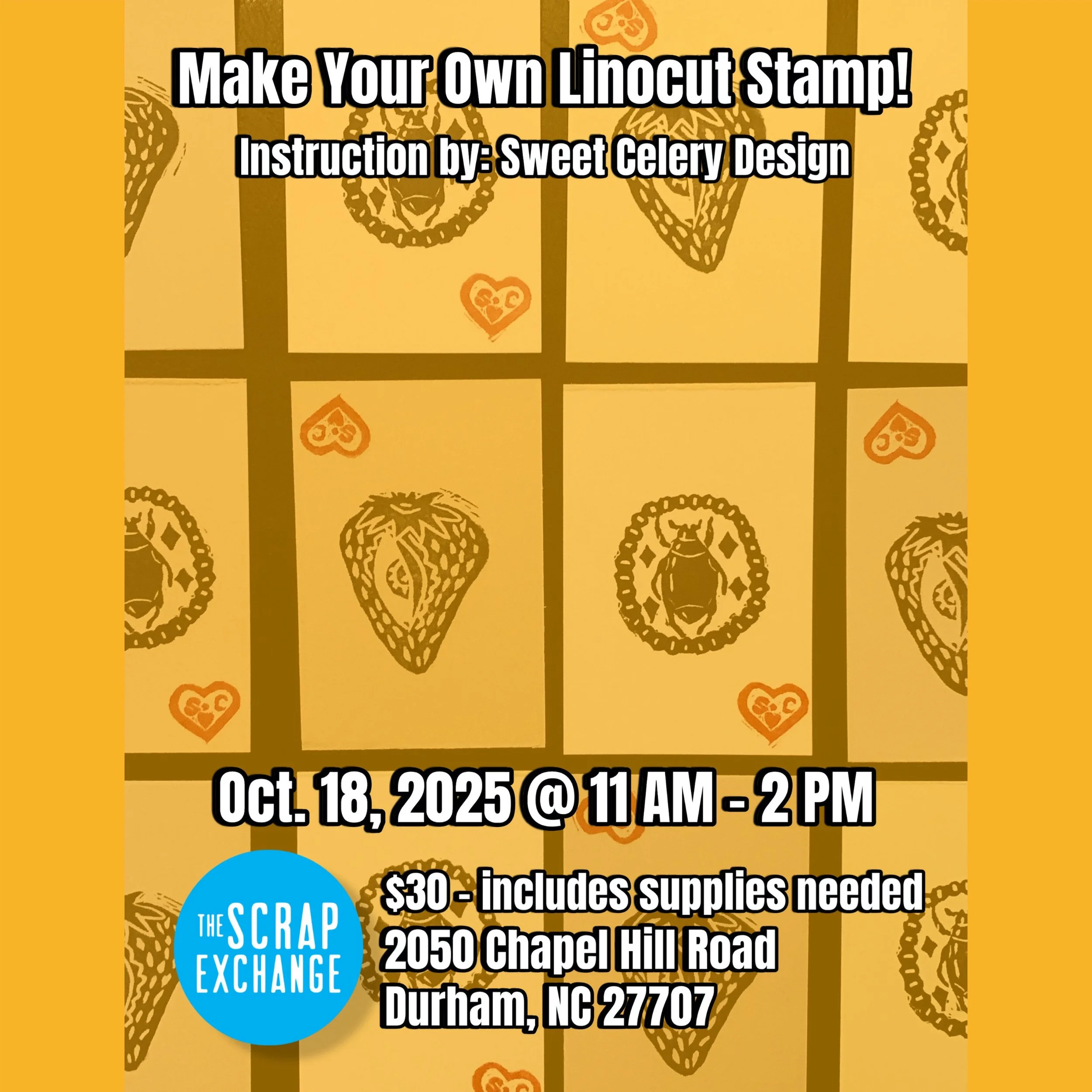 Did you learn about blockprinting in middle or high school? Did you want to practice more? This is the class for you! This is an introductory class to linocut where you will learn how to carve your own stamp. Perfect for beginners and those who have previously learned blockprinting skills but want to get back into it. Participants will create a stamp of their own design and will print on fabric or paper with use of instructor’s tools. Participants will leave the class with their own stamp and prints.