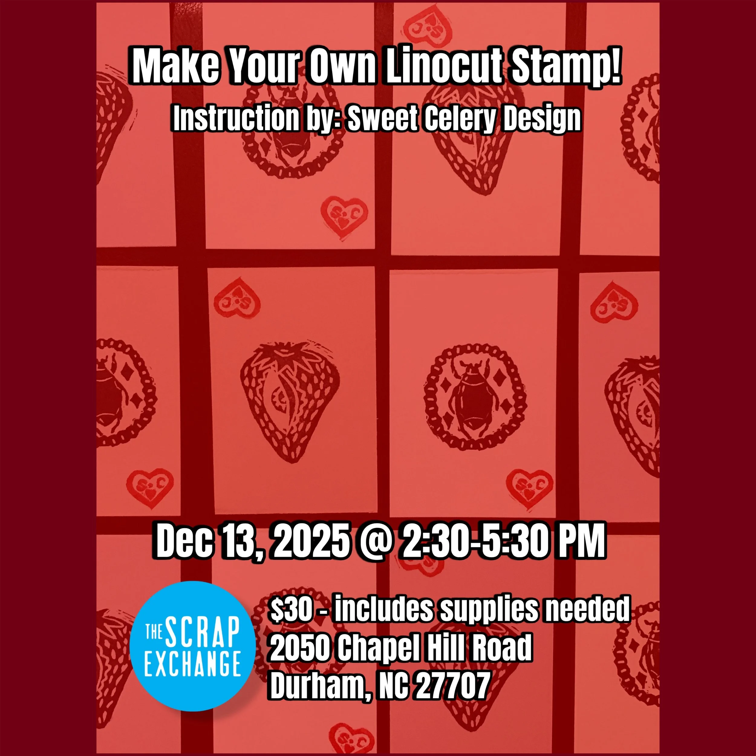 This is a special holiday evening edition of my normal stamp workshop at Scrap, but there is no pressure to create a holiday-themed stamp.
